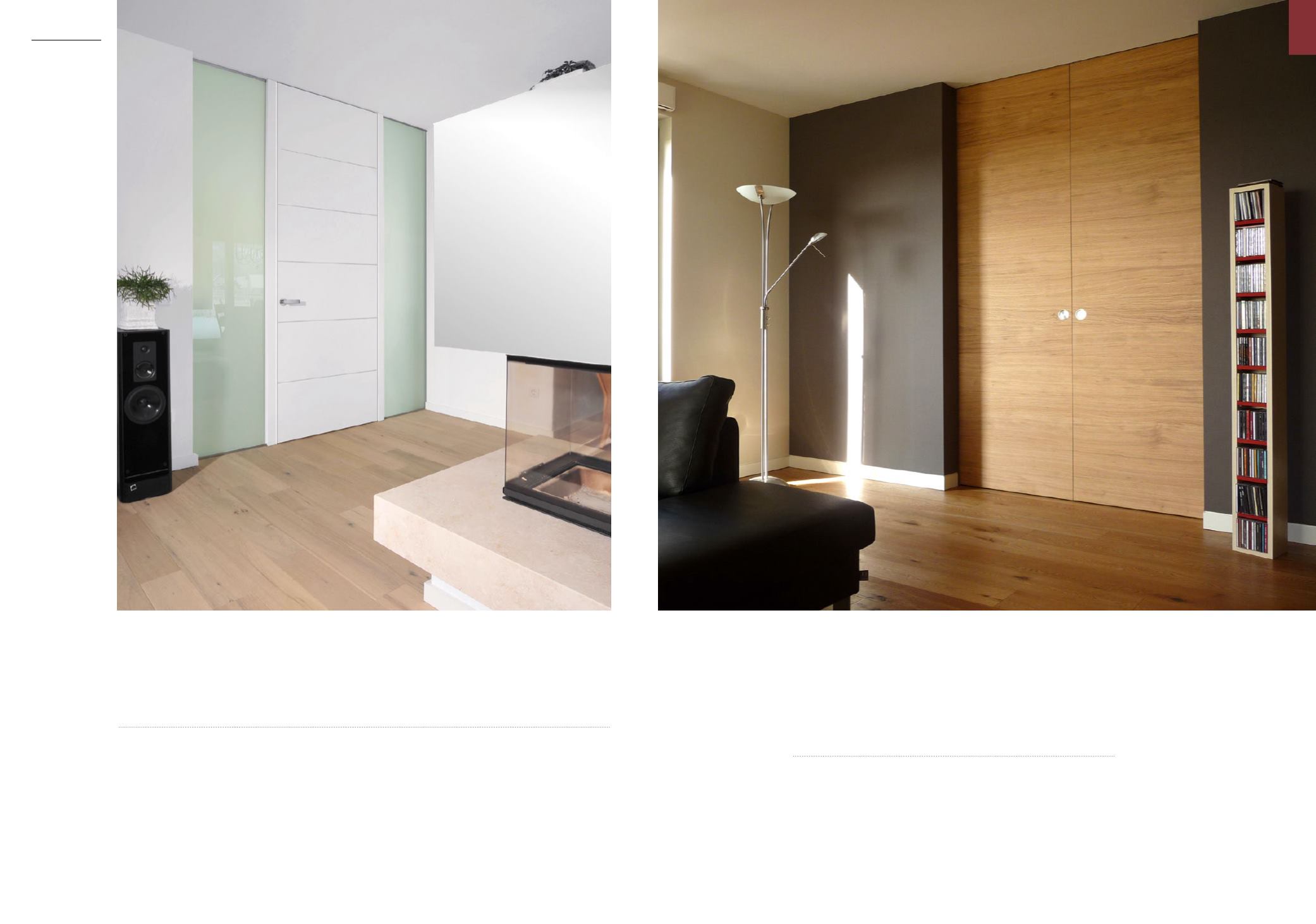 Raumhohe, in die Wand laufende Gleittüren in quer furnierter